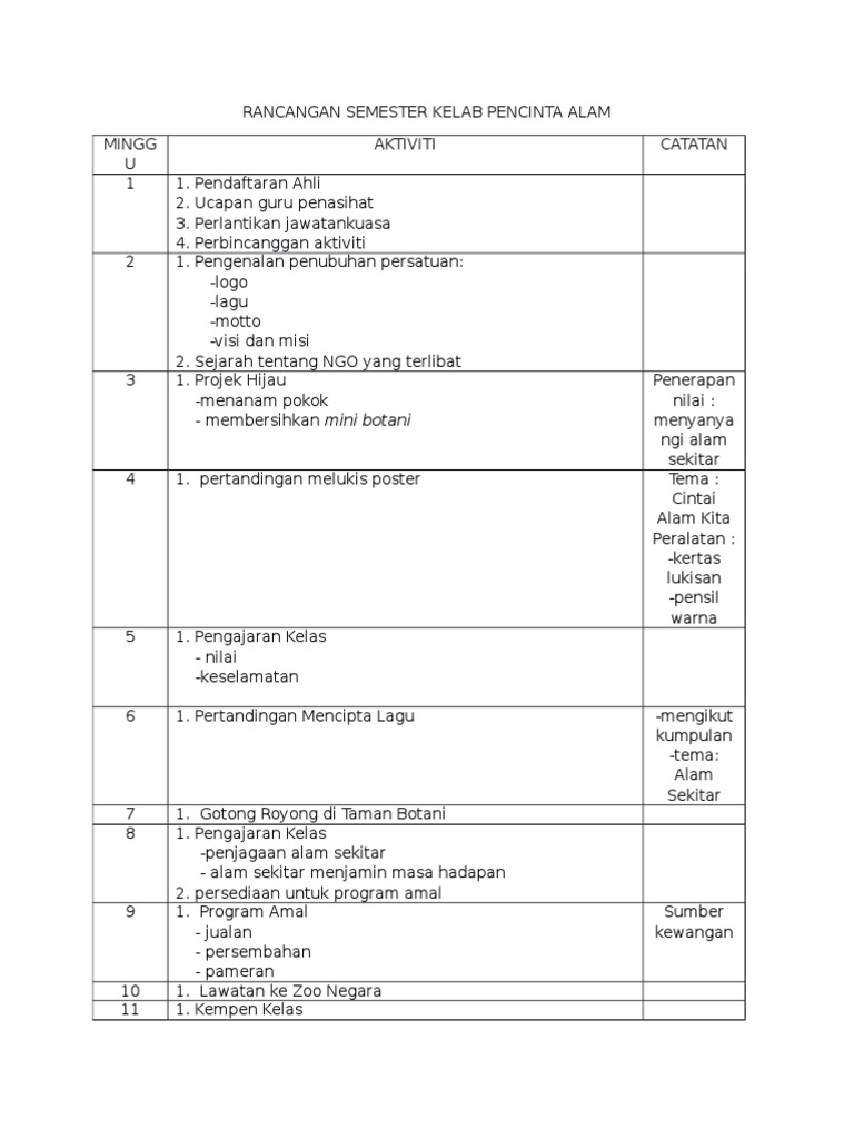 Rancangan Semester Kelab Pencinta Alam Pdf